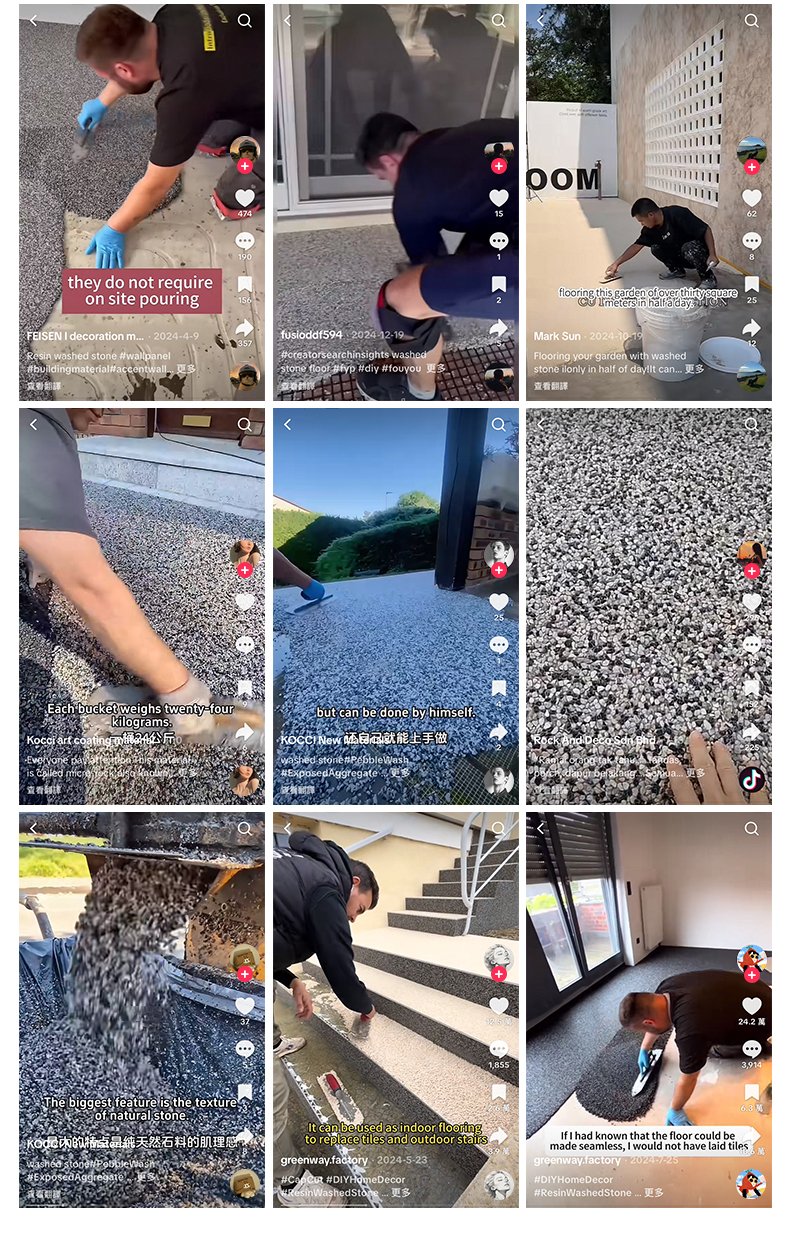 Washed stone swimming pool display